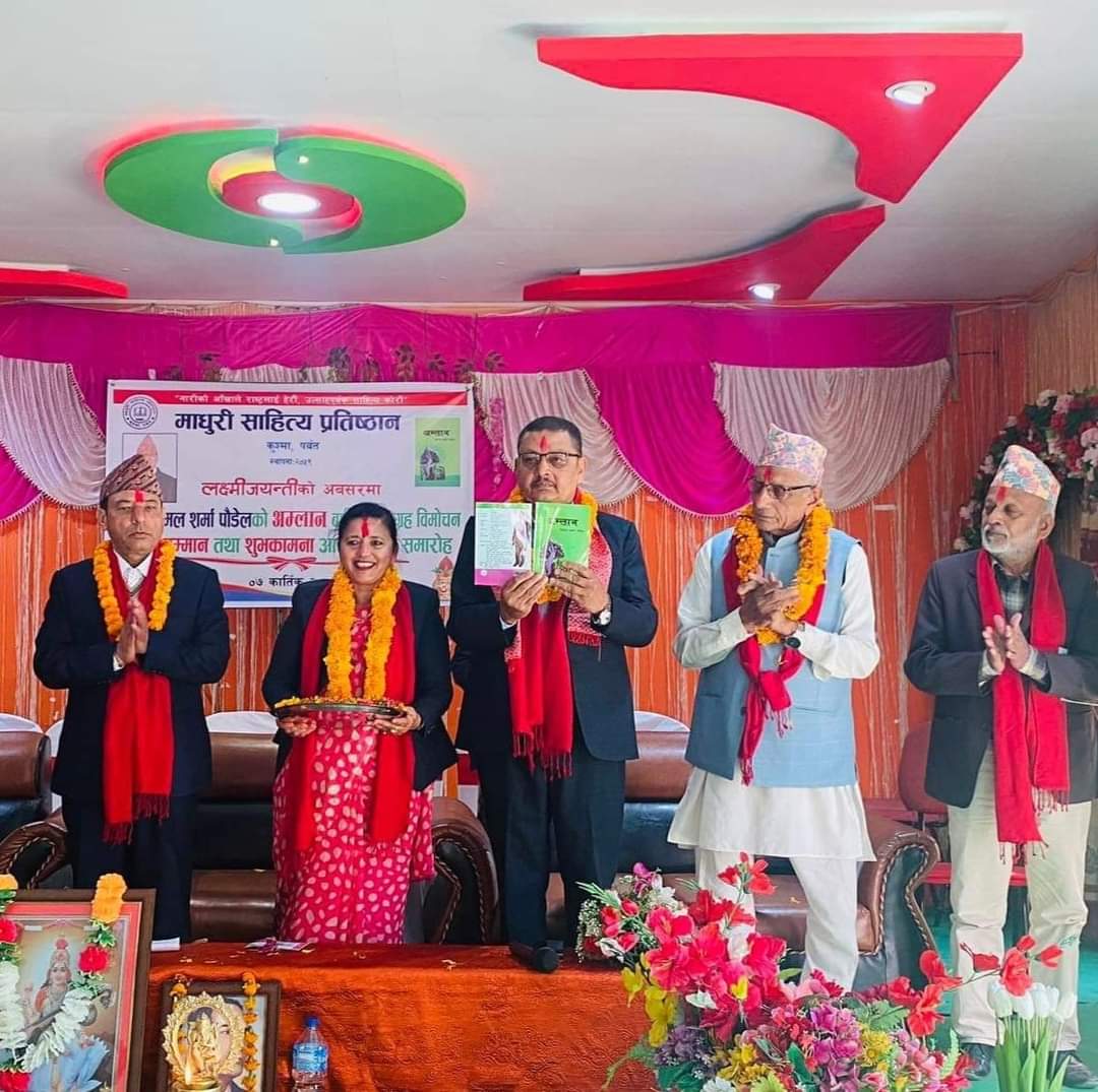 माधुरी साहित्य प्रतिष्ठानका उपाध्यक्ष सुभन्तनाथ सुवेदीले स्वागत,सर्जक विमल शर्मा पौडेलका छोरी सविना पौडेलले धन्यवाद मन्त्वय राखेका थिए । सो,लाकापर्ण कार्यक्रममा जिल्लामा रहेर साहित्य क्षेत्रमा योग्दान पु¥याएका नयाँ र पुराना दिग्जहरुको सहभागिता रहेको थियो । माधुरी साहित्य प्रतिष्ठानका अध्यक्ष तथा साहित्यकार अध्यक्ष सरस्वती शर्मा‘जिज्ञासु’को सभापतित्वमा सम्पन्न सो कार्यक्रमको संचालन सचिव नवराज शर्माले गरेका थिए ।